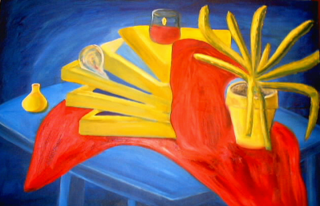This was the second painting I did. It is a still life painted in the primary colors.